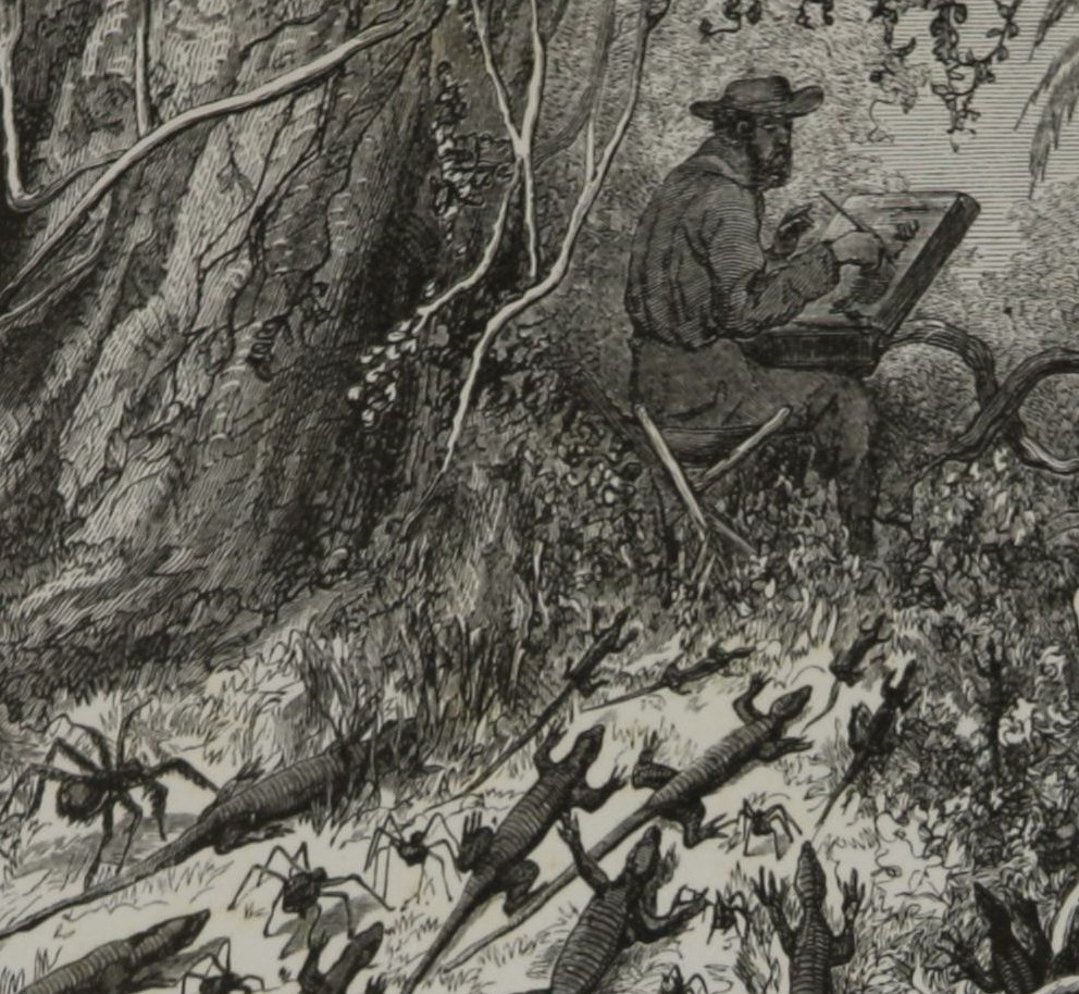 Detalhe de Présages d’une invasion de fourmis (Sinais de um ataque de formigas). Gravura em madeira, por Auguste François Biard, Edouard Riou e Alexandre Hurel. 1862. Em Deux années au Brésil, de A. F. Biard. Acervo digital da Brasiliana USP.