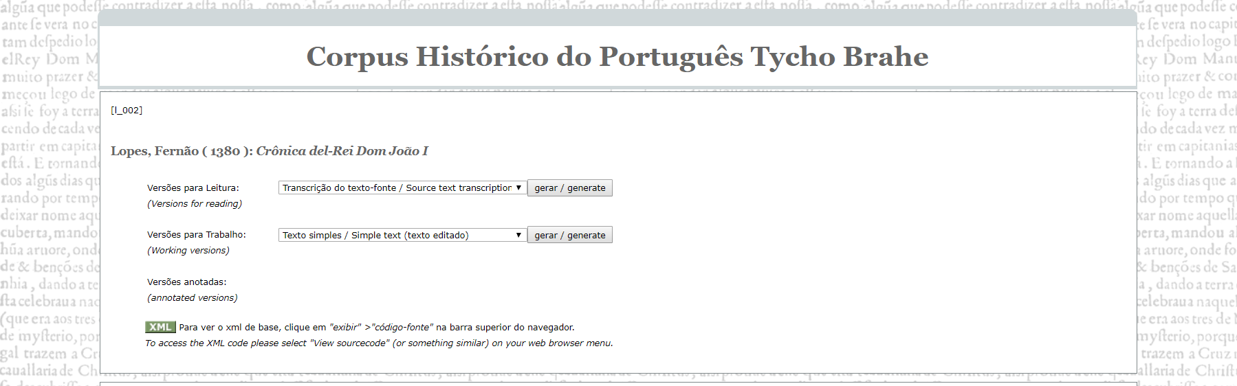 Para ilustrar esta reflexão sobre os desafios das ‘Humanidades Digitais’ fora da anglofonia, visitaremos algumas pesquisas em língua portuguesa que podem ser consideradas pioneiras no uso das tecnologias computacionais no trabalho filológico no Brasil – uma lista que, longe de ser exaustiva, apenas reflete os projetos dos quais tenho conhecimento próximo.